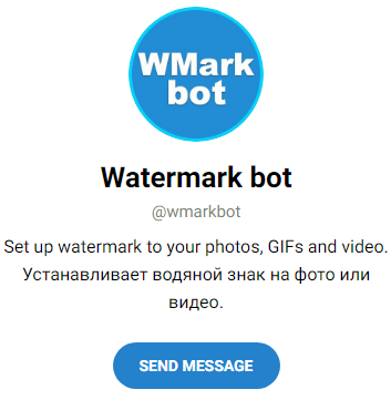 اگر یک عکاس هستید یا آثار هنری دیجیتال خلق می‌کنید، یکی از بهترین ربات های تلگرام برای کانال شما می‌تواند ربات Watermark bot باشد. با این ربات می‌توانید به تصاویر خود واترمارک اضافه کنید. امکان اضافه کردن واترمارک به صورت متنی و تصویری وجود دارد. همچنین مستقیما از داخل ربات می‌توانید عکس را در توییتر و دیگر شبکه‌های اجتماعی به‌اشتراک بگذارید.