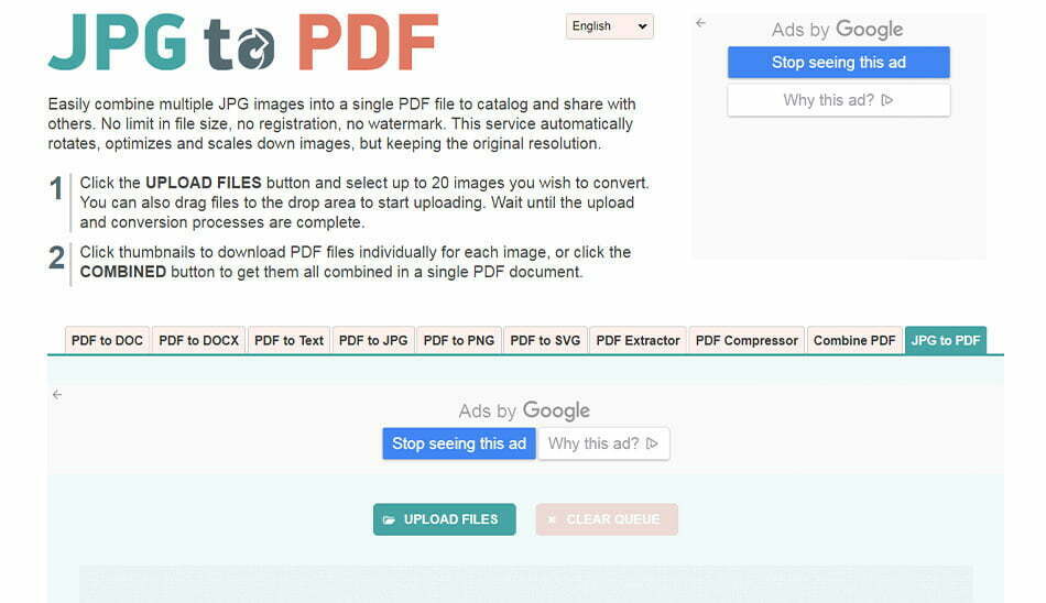 همه وبسایت های این کار اساسا برای تبدیل JPG به PDF با کیفیت بالا از یک روش استفاده میکنند، اما وبسایتی که ما به شما معرفی میکنیم برخلاف سایر وبسایتهای دیگر برای اندازه فایلهای شما محدودیتی ایجاد نکرده و در فایل PDF نهایی نیز واترمارک قرار نمیدهد.
