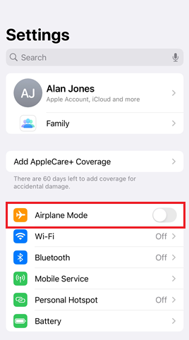 کافی است به تنظیمات بروید و Airplane Mode را روشن کنید.