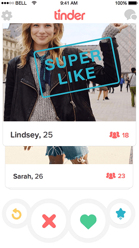 دکمه Super Like: ستاره آبی برای زمانی است که شما از پروفایل شخصی خیلی خوشتان آمده است و تمایل به برقراری رابطه با فرد مورد نظر را دارید. در صورت تاچ کردن این دکمه، بلافاصله یک نوتیفیکیشن هم برای طرف مقابل شما نیز ارسال میشود. این ویژگی برای کاربران پریمیوم است، اما با حساب رایگان میتوانید در هر روز از یک Super Like استفاده کنید.