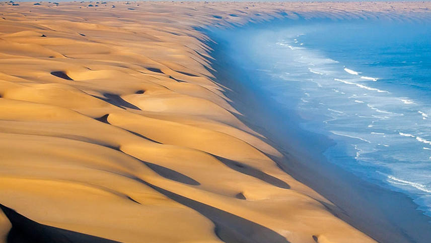 «صحرای نامیب» را باید خشک ترین بیابان جهان دانست. این کویر در گویش محلی به معنی مکانی است که هیچ چیزی در آن رشد نمیکند. صحرای نامیب با 81000 کیلومتر مربع مساحت یکی از کویرهای جهان با منظرهای شبیه به مریخ است. تنها چیزی که در کویر میبینید تپههای شنی بزرگ و کوچک، کوههای ناهموار و شنزارهای وسیع خواهد بود. البته تلاقی این صحرا با سواحل اقیانوس اطلس منظره چشمنوازی را ایجاد میکند.
