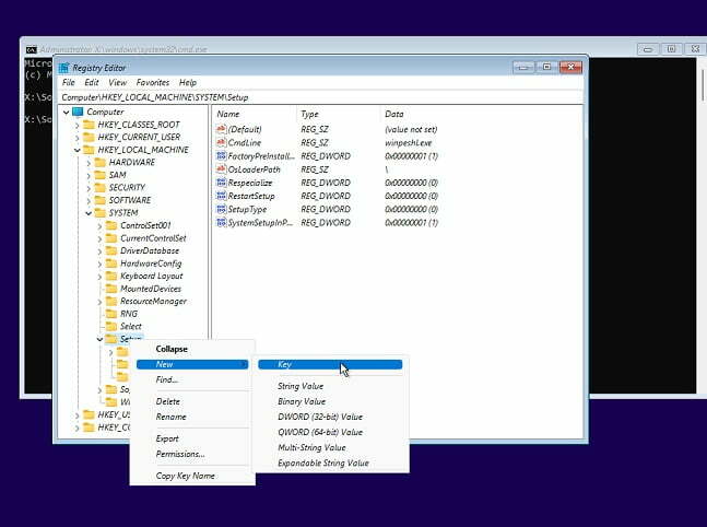 حالا از بخش سمت چپ صفحه گزینه Setup را به صورت هایلایت شده مشاهده خواهید کرد. روی آن راست کلیک کرده و گزینه New و سپس Key را بزنید. نام این کلید را LabConfig بگذارید.