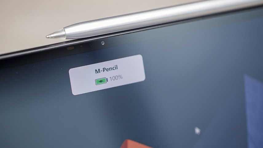 پایینتر، ترکپد را داریم که کمی در مقایسه با ترکپدهای لپتاپها کوچکتر است و به همین دلیل شاید بهتر باشد بهجای آن از یک ماوس بیسیم استفاده کنید. علاوه بر کیبورد یکی دیگر از لوازم جانبی میت بوک ای، قلم M-Pencil است که جداگانه فروخته میشود.
