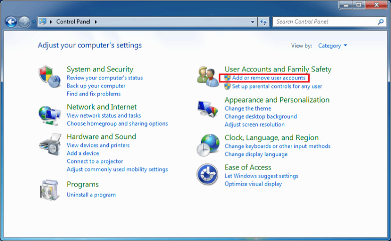 در بخش User Accounts and Family Safety، روی Add or remove user accounts کلیک کنید.