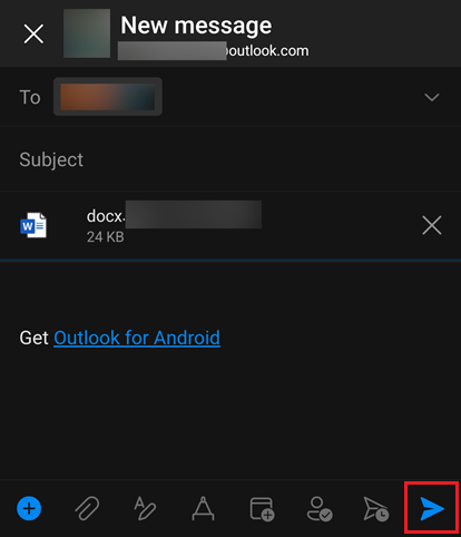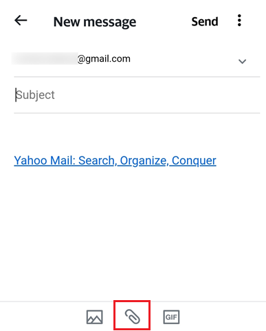 در صفحه بعدی، گیرنده ایمیل و موضوع را مشخص کرده و برای ضمیمه کردن فایل، روی آیکون سنجاق کاغذی بزنید.