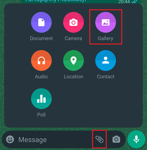 1. ابتدا به صفحه چت با خودتان بروید و روی آیکون سنجاق کاغذی زده و گالری را انتخاب کنید.