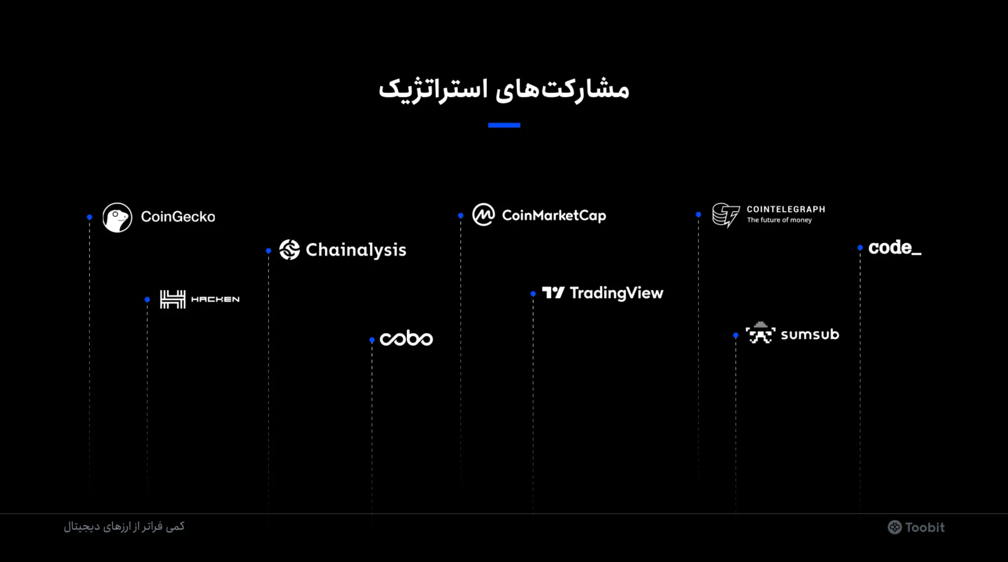 امروز صرافی Toobit مفتخرست تا با فعالیت در بیش از 100 کشور و پشتیبانی از 11 زبان زنده دنیا و همچنین داشتن 3 میلیون معامله گر فعال و حجم معاملاتی روزانه 30 میلیارد دلار و فعالیت با بیش از 1000 رمزارز جزء 7 پلتفرم برتر در CoinGecko و CoinMarketCap باشد و در سطح جهانی اعتماد معامله گران را کسب کند و عناوین زیر را کسب نماید.