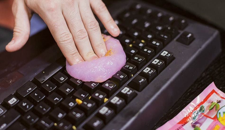 4. تمیز کردن کیبورد کامپیوتر با استفاده از خمیر چسبان