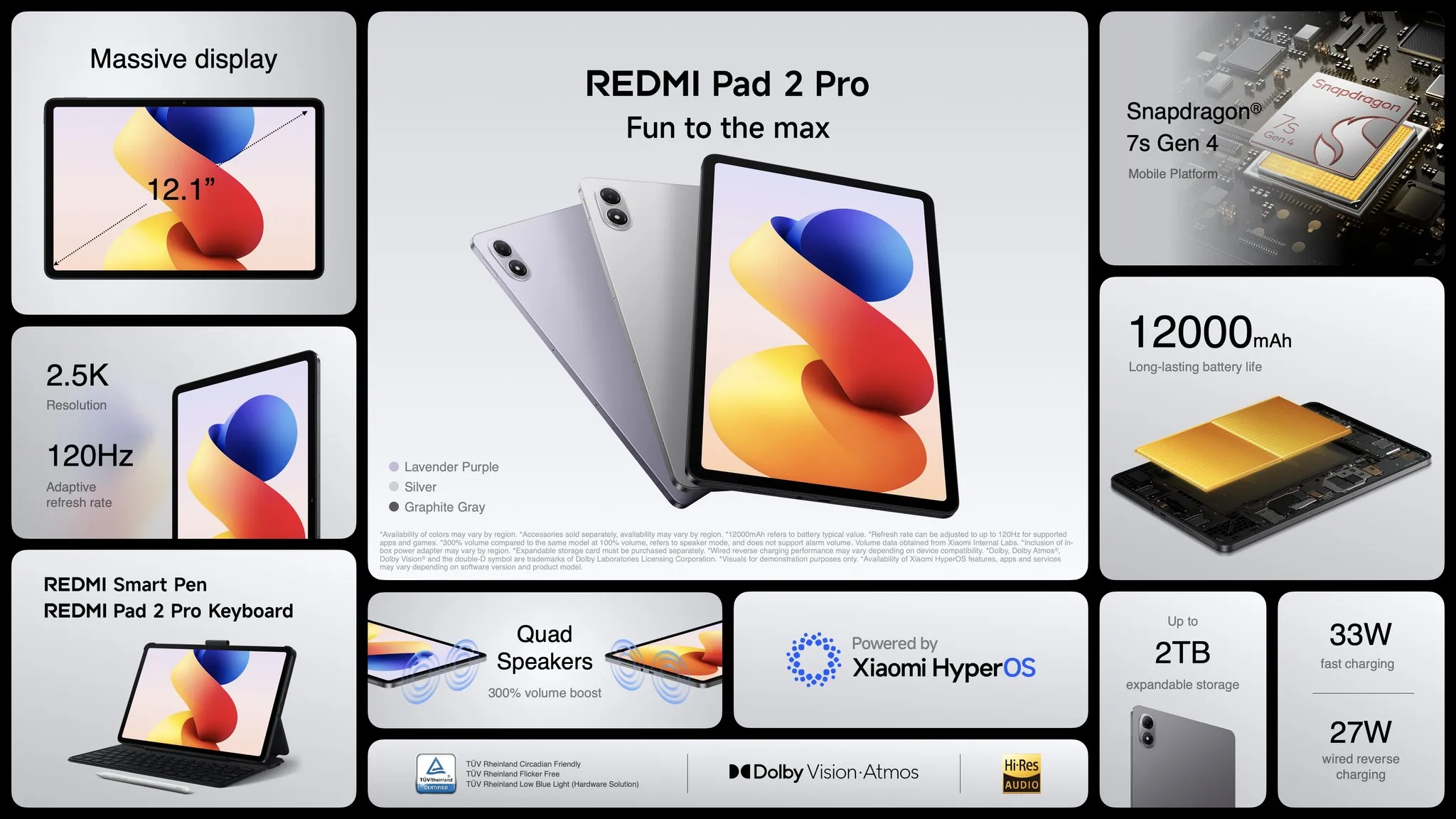 همچنین این مدل از قلم هوشمند Redmi Smart Pen و کیبورد اختصاصی Redmi Pad 2 Pro Keyboard پشتیبانی میکند تا بتوان آن را به یک ابزار کامل برای یادداشتبرداری، طراحی یا کار روزمره تبدیل کرد.